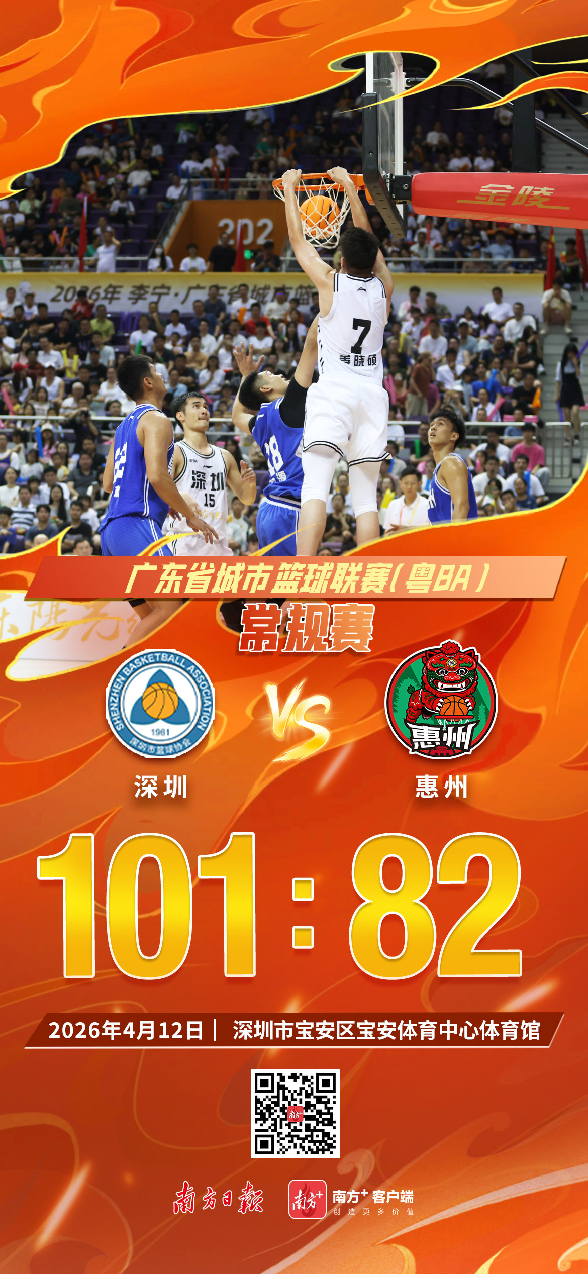 4月12日晚,广东省城市篮球联赛“粤BA”第三轮临了一场比赛在宝安体育馆打响,深圳队主场迎战惠州队。这场浓烈的“邻居德比”中,深圳队凭借更胜一筹的举座实力最终慑服惠州队,迎来三连胜。