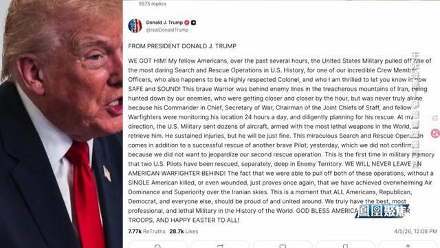 到此时,特朗普才松了连气儿,好意思国当地技艺4月5日凌晨零点零八分,深夜还未入眠的特朗普俄顷发布长文,本旨地晓喻,咱们找到他了!